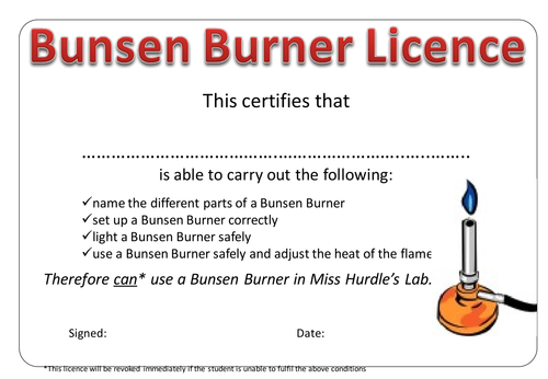 PDF The Bunsen Burner (1) - eChalk The Bunsen burner was placed on a heat resistance surface. The Bunsen burner is not too close to the edge of the desk. The burner was connected to the gas tap correctly. The rubber tubing was checked for cracks or leaks. The air hole on the Bunsen burner was closed before lighting. The splint was lit before the gas was turned on.