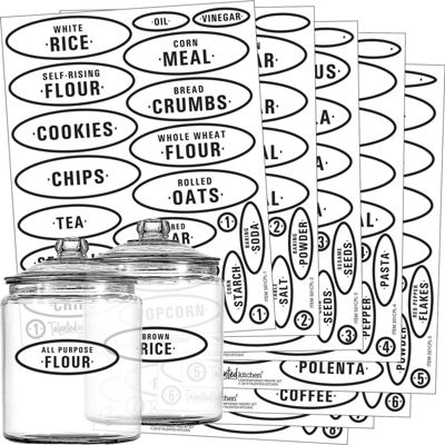 158 Pieces Chalkboard Pantry Labels for Food Containers, Preprinted White All Caps on Black Stickers for Jars, Kitchen Canisters (Water Resistant)
