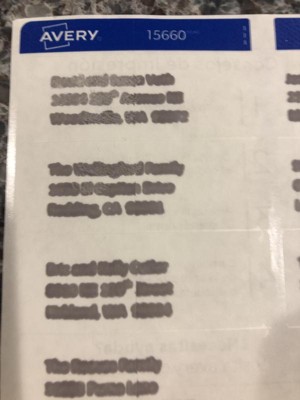 Avery labels printing blurry. MX490 Printing Blurry Avery Labels - Canon Community Apr 26, 2022 ... It prints regular information fine but the avery labels/template keeps coming out blurry and misaligned. Prior to yesterday everything was ... avery label 5195 printed BLURRY. How do I change the ... Jan 29, 2019 ... Go to Control Panel, Printers, go to the active default, right click, Select Printing Preferences, change the drop down "Type" to 'Other Photo ... Common Label Mistakes (and How to Prevent Them) Jan 25, 2021 ... There are a variety of reasons graphics can appear blurry. For example a file error, low resolution, incompatible printer, wrong file type, ... Printing blurred from hp laser printer onto Avery label sheet - Fixya Sep 5, 2019 ... I had the same issue when using Avery labels, here's what resolved it for me. Go to Control Panel, Printers, go to the active default, right mouse click, click ...