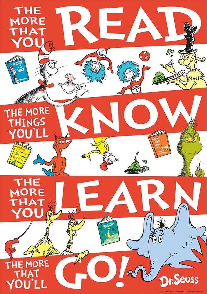 Free Dr. Seuss Printables with 100+ Ways to Boost Learning Fun Free Dr. Seuss Printables for Decorating a Classroom or Nursery (Glitter 'N Spice): 2 different versions-one set in black and white and another in color-featuring Dr. Seuss quotes. Dr. Seuss Printable-You Have Brains In Your Head (Balancing Home): Subway art poster featuring quote from Oh The Places You'll Go!